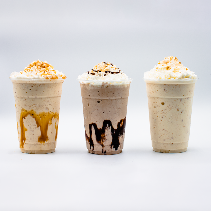 Our thick milkshakes topped with hand-made waffle crunch.